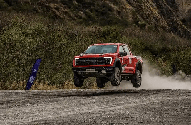 福特性能部门为F-150猛禽配备了3.5升EcoBoostV6双涡轮增压发动机,输出超过450马力的动力,能够轻松应对各类复杂地形。在10速自动变速箱的支持下,这款发动机不仅动力强劲且具备顺畅的动力转换,使得猛禽在高速行驶下保持稳定,并在越野驾驶中提供持续的动力响应。通过这套动力系统,猛禽可以在沙地、山地甚至泥地等多种地形中表现出色,而这些设计和配置让猛禽在极限环境下展现出赛车级的稳定性和耐用性,满足了巴哈赛道的高标准。